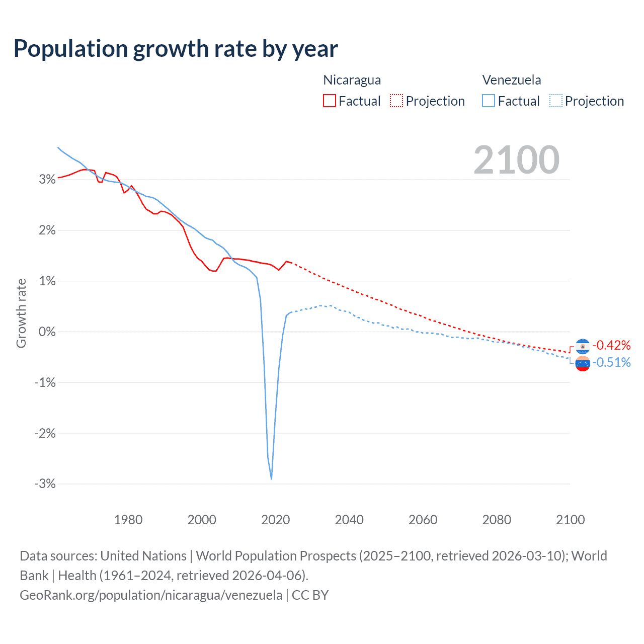 Data sources: World Bank | Health (1960–2024, retrieved 2026-04-06); United Nations | World Population Prospects (1960–2026, retrieved 2026-03-10); U.S. Census Bureau (1960–2025, retrieved 2026-02-08); Central Intelligence Agency (CIA) (2000–2019, retrieved 2026-02-20).