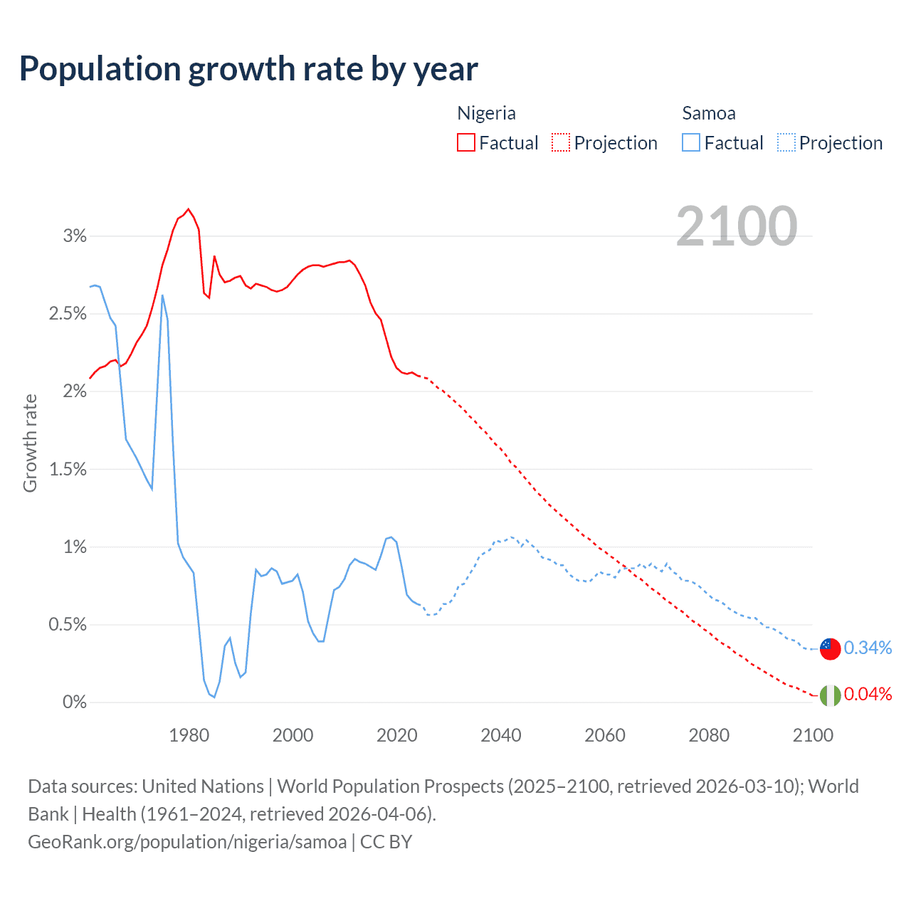Nigeria vs Samoa: population by year and forecast