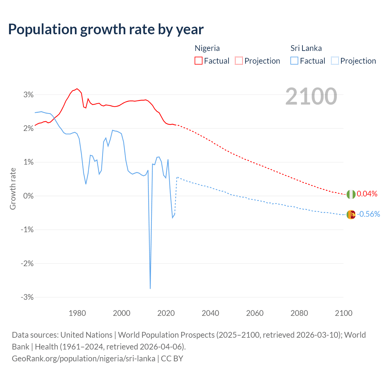 - For the last 10 years, Nigeria has had an average growth rate of +2.31% per year vs +0.57% in Sri Lanka.