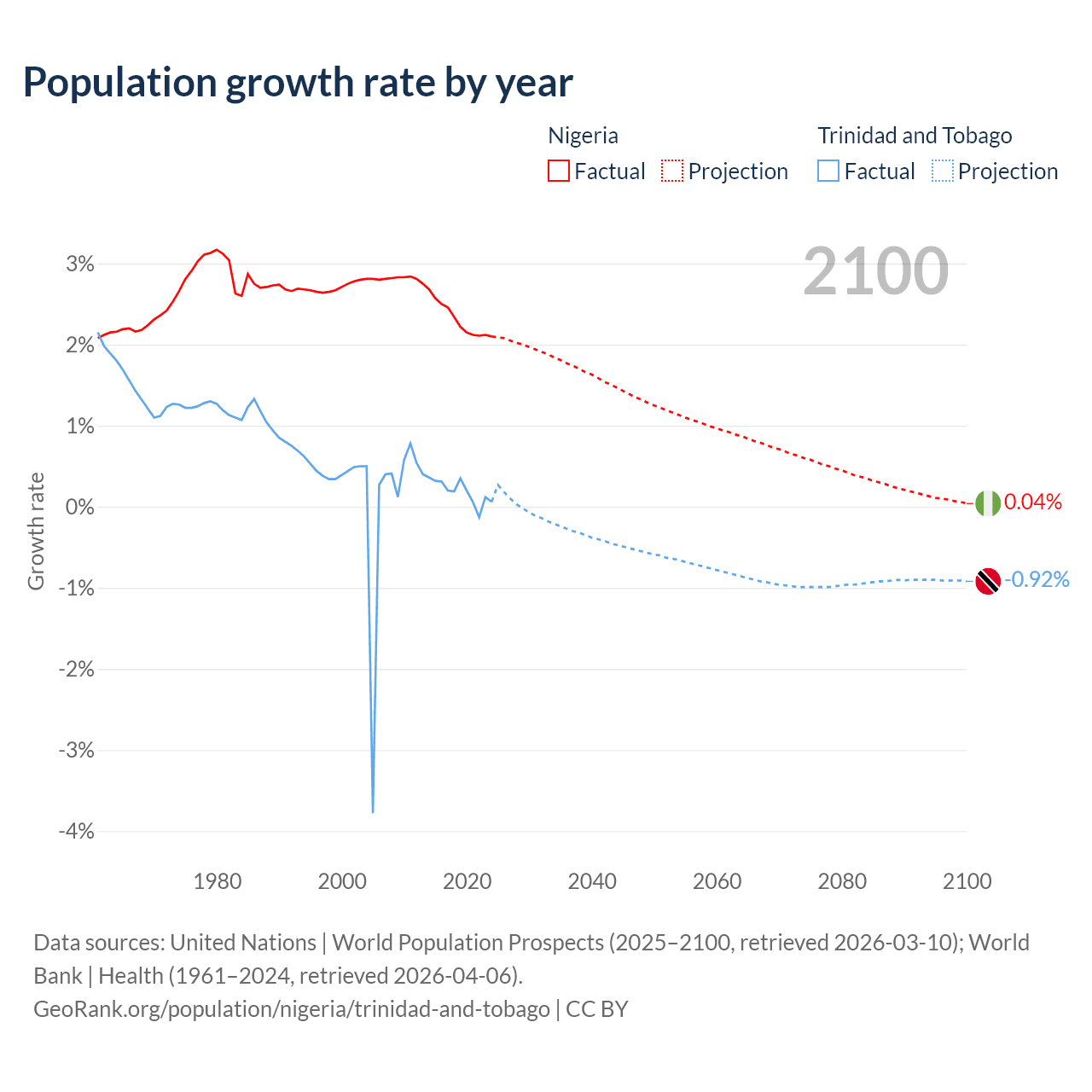 - For the last 10 years, Nigeria has had an average growth rate of +2.31% per year vs +0.19% in Trinidad and Tobago.