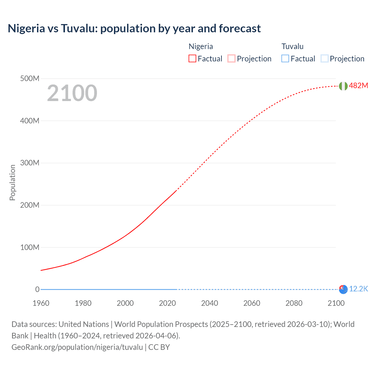 Nigeria vs Tuvalu: population by year and forecast