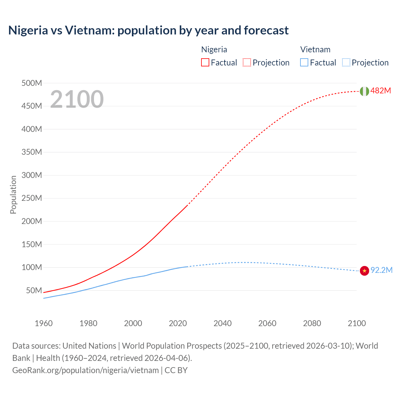 Nigeria vs Vietnam: population by year and forecast