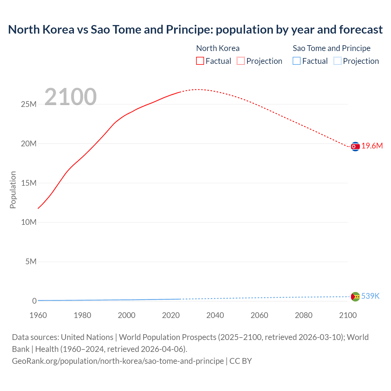 North Korea vs Sao Tome and Principe: population by year and forecast