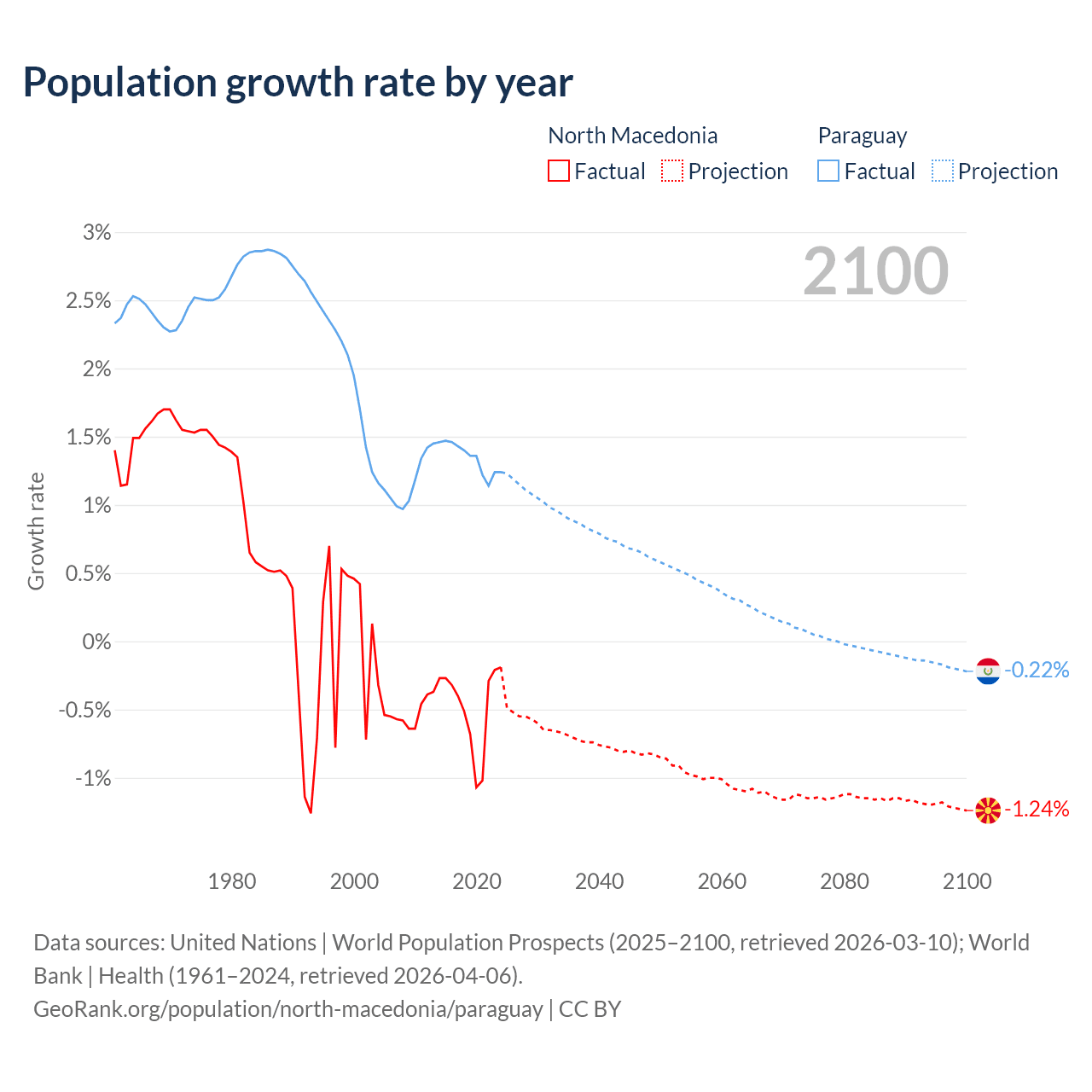 North Macedonia vs Paraguay: population by year and forecast