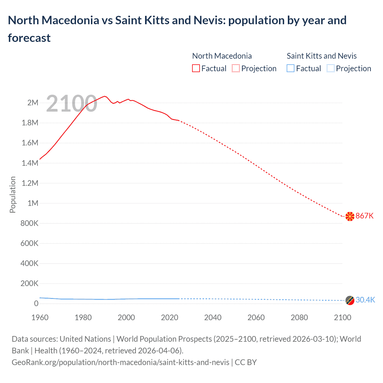 North Macedonia vs Saint Kitts and Nevis: population by year and forecast