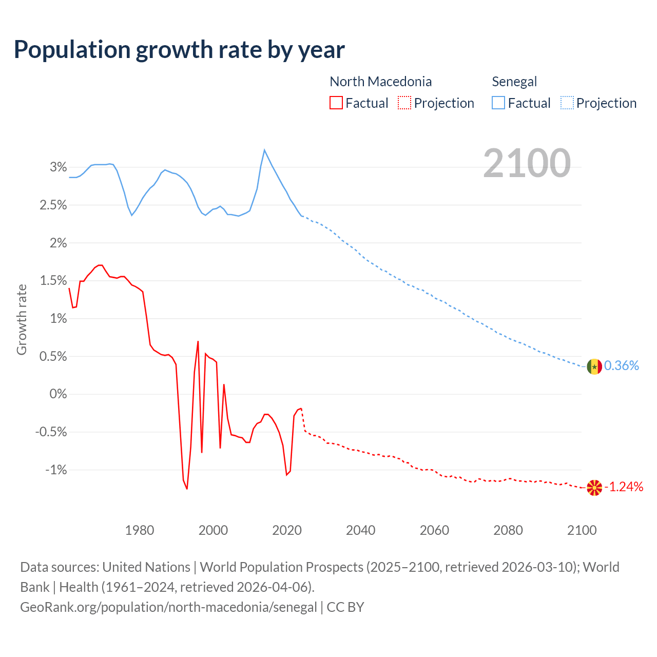 North Macedonia vs Senegal: population by year and forecast
