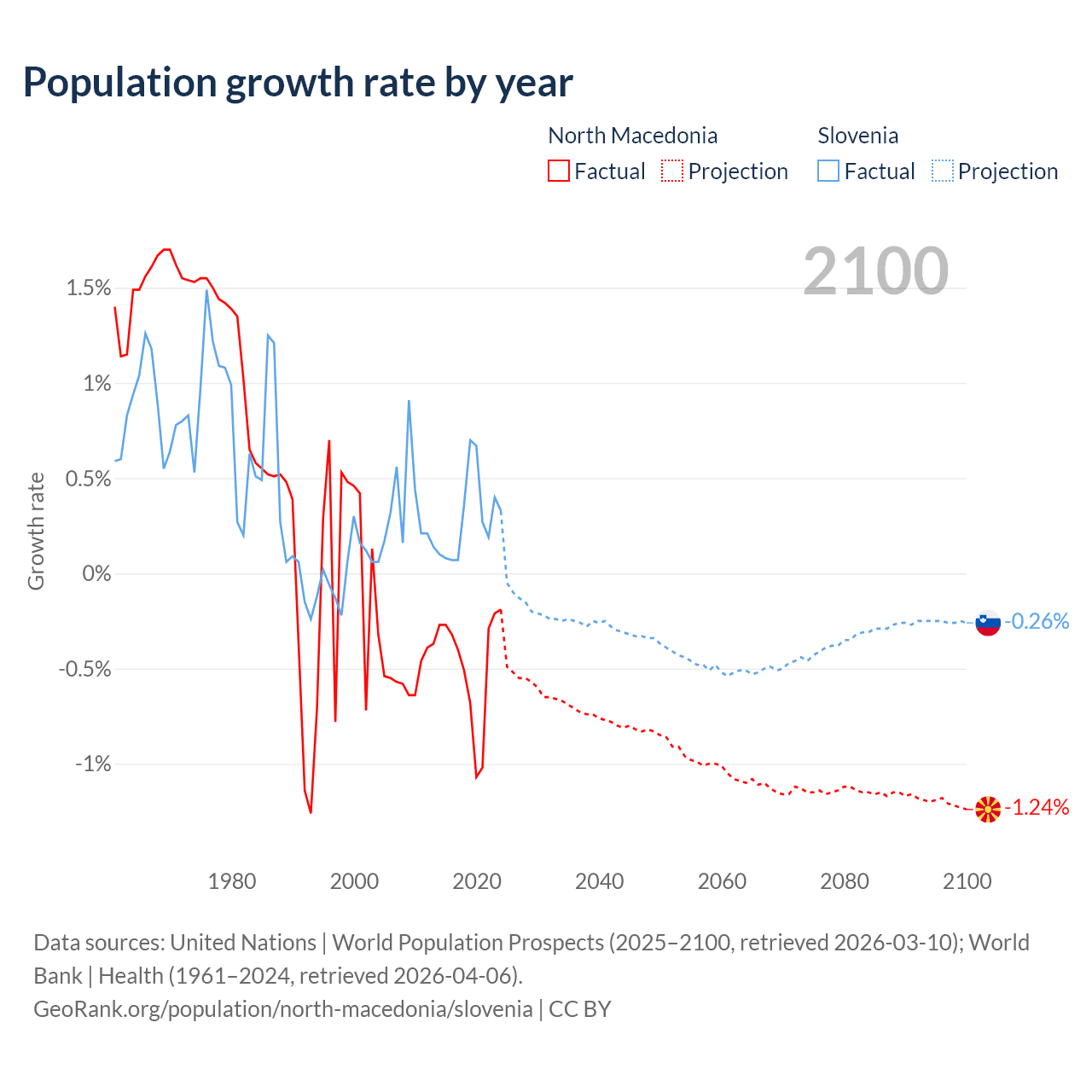 North Macedonia vs Slovenia: population by year and forecast