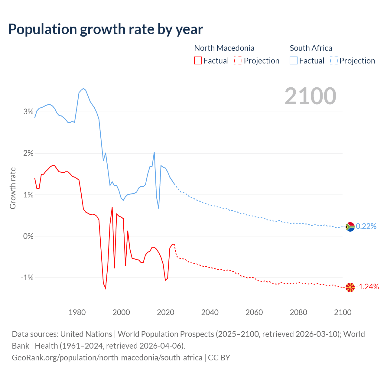 North Macedonia vs South Africa: population by year and forecast