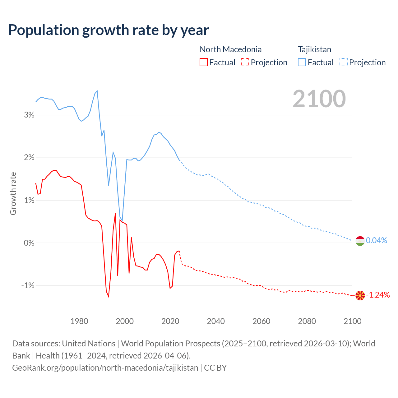 North Macedonia vs Tajikistan: population by year and forecast