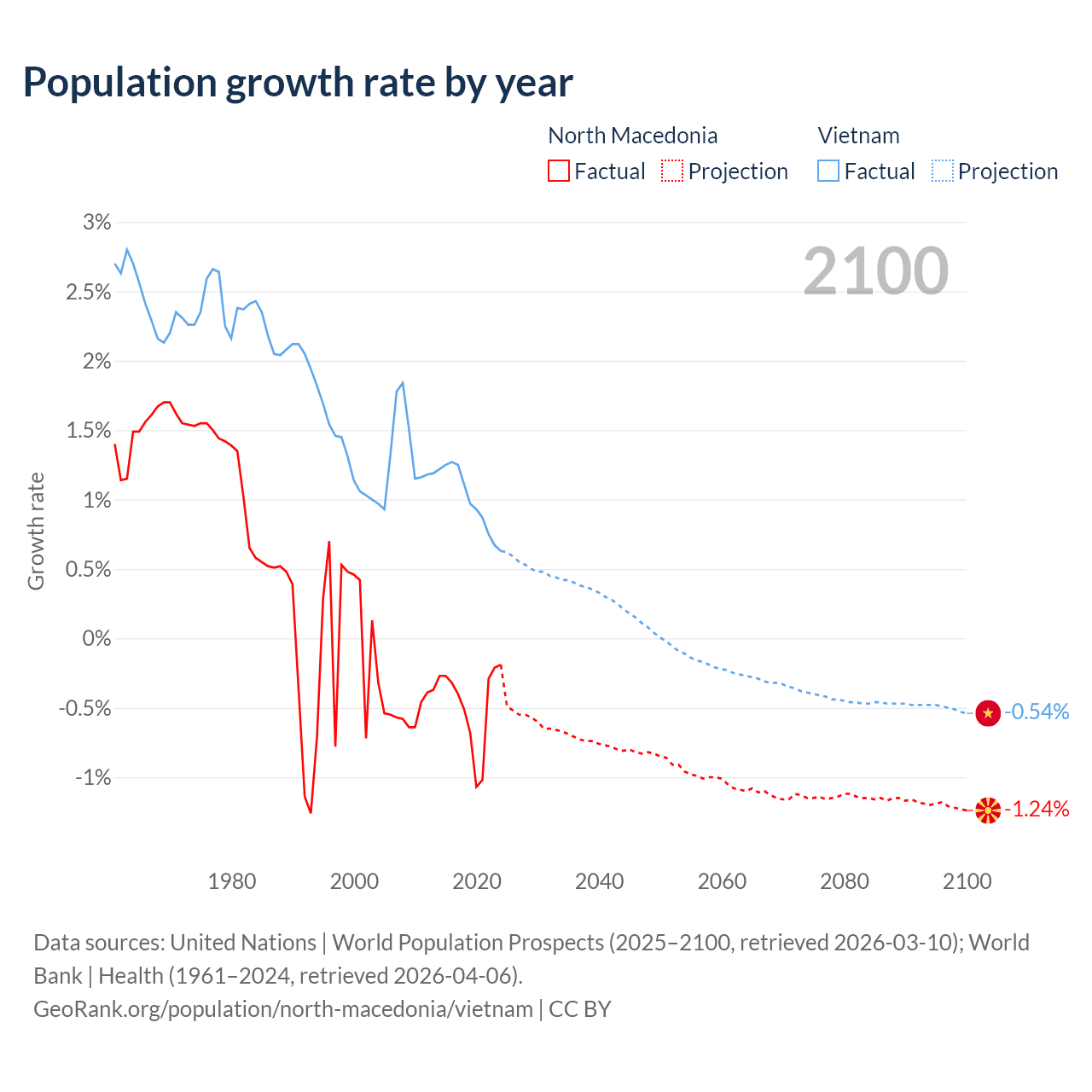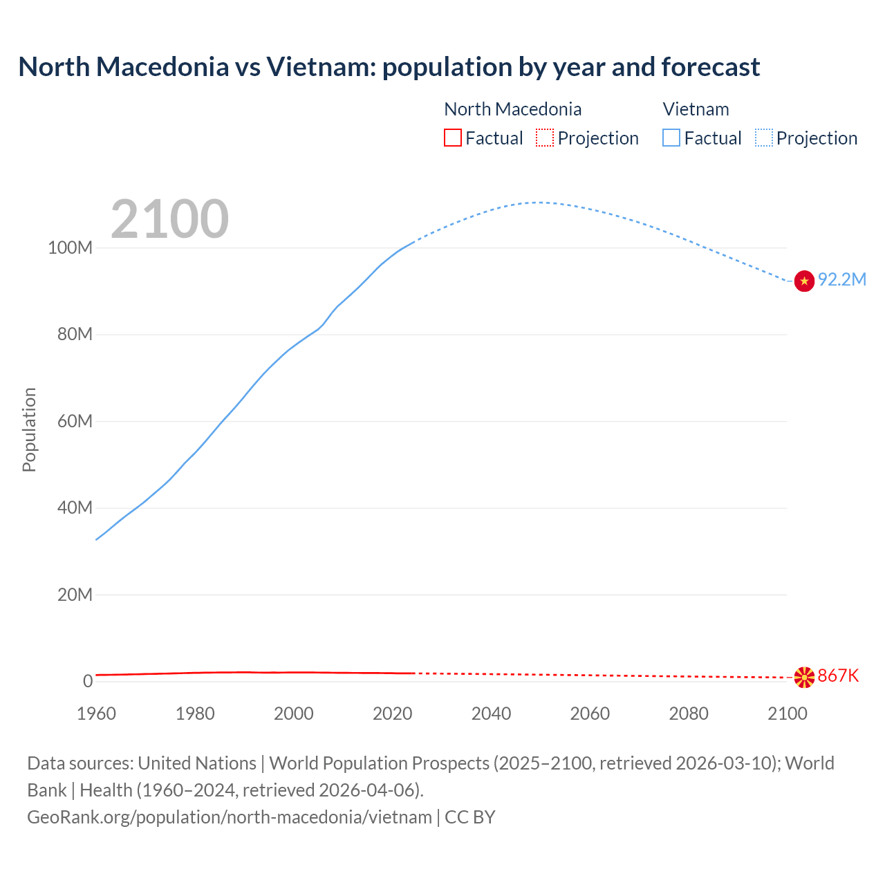 North Macedonia vs Vietnam: population by year and forecast
