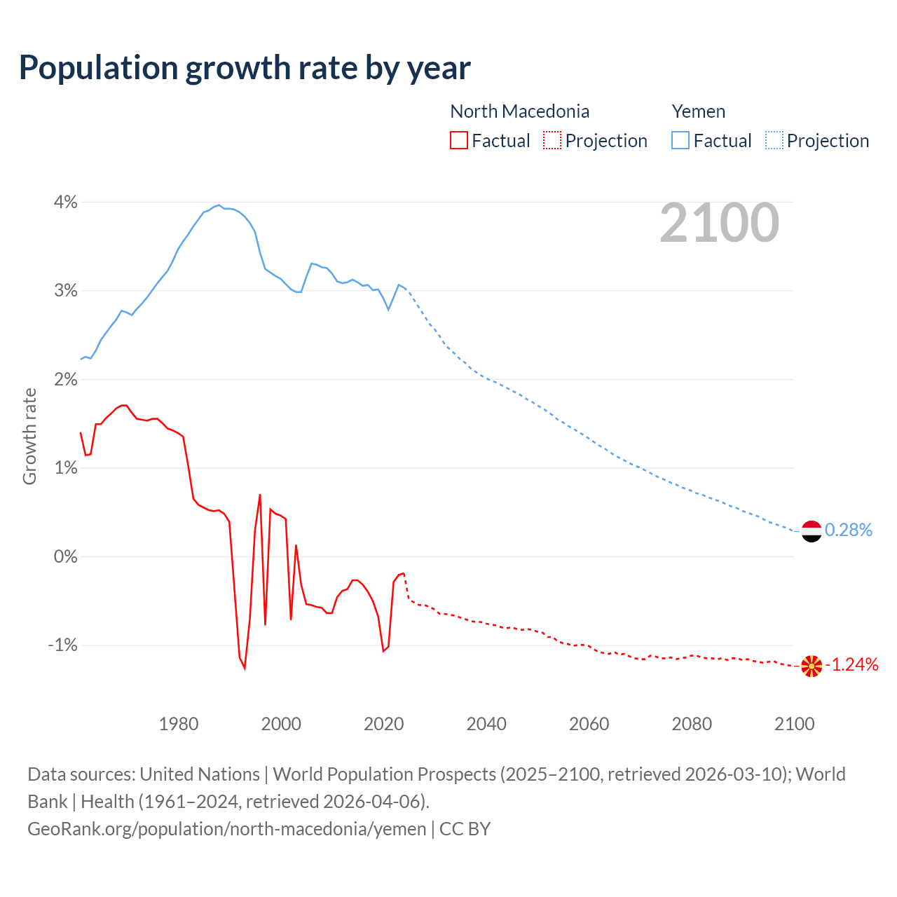 North Macedonia vs Yemen: population by year and forecast
