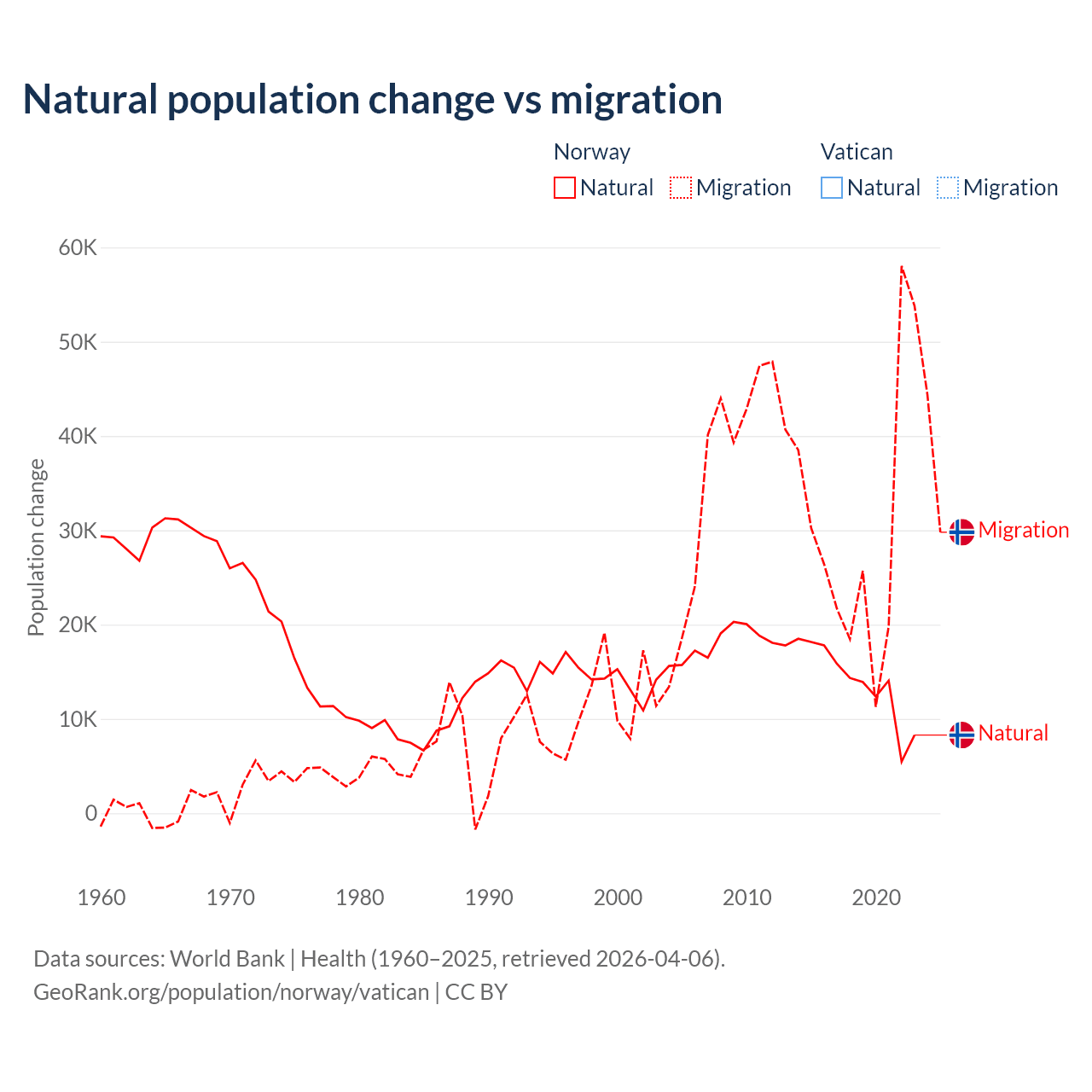 - For the last 10 years, Norway has had an average growth rate of +0.85% per year vs +1.9% in the Vatican.