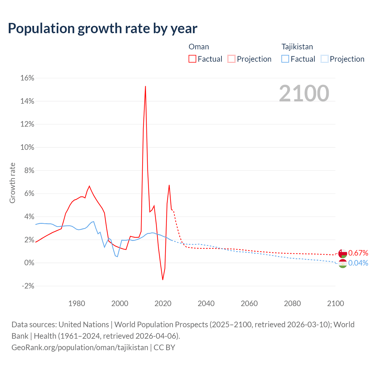 - For the last 10 years, Oman has had an average growth rate of +2.99% per year vs +2.33% in Tajikistan.