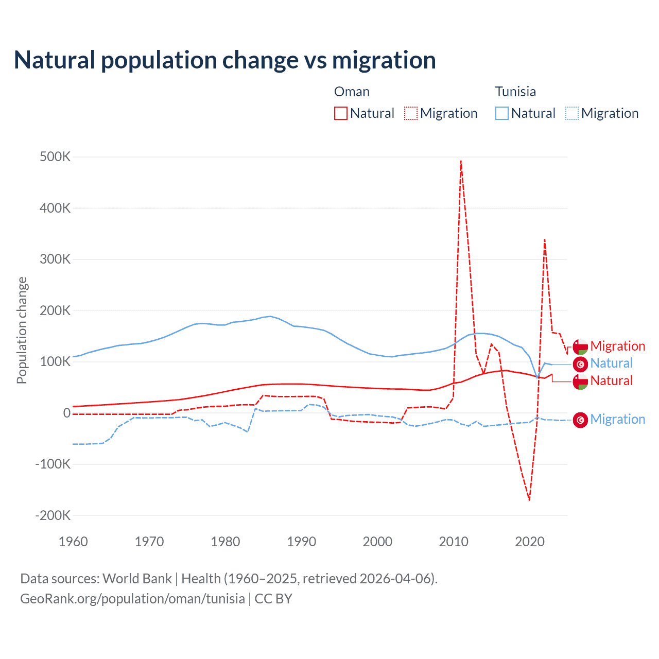 Population differences between Oman and Tunisia