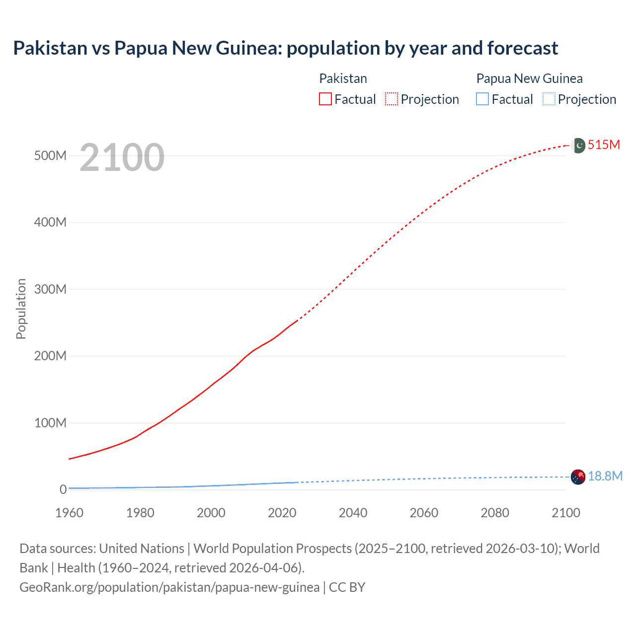 Pakistan vs Papua New Guinea: population by year and forecast