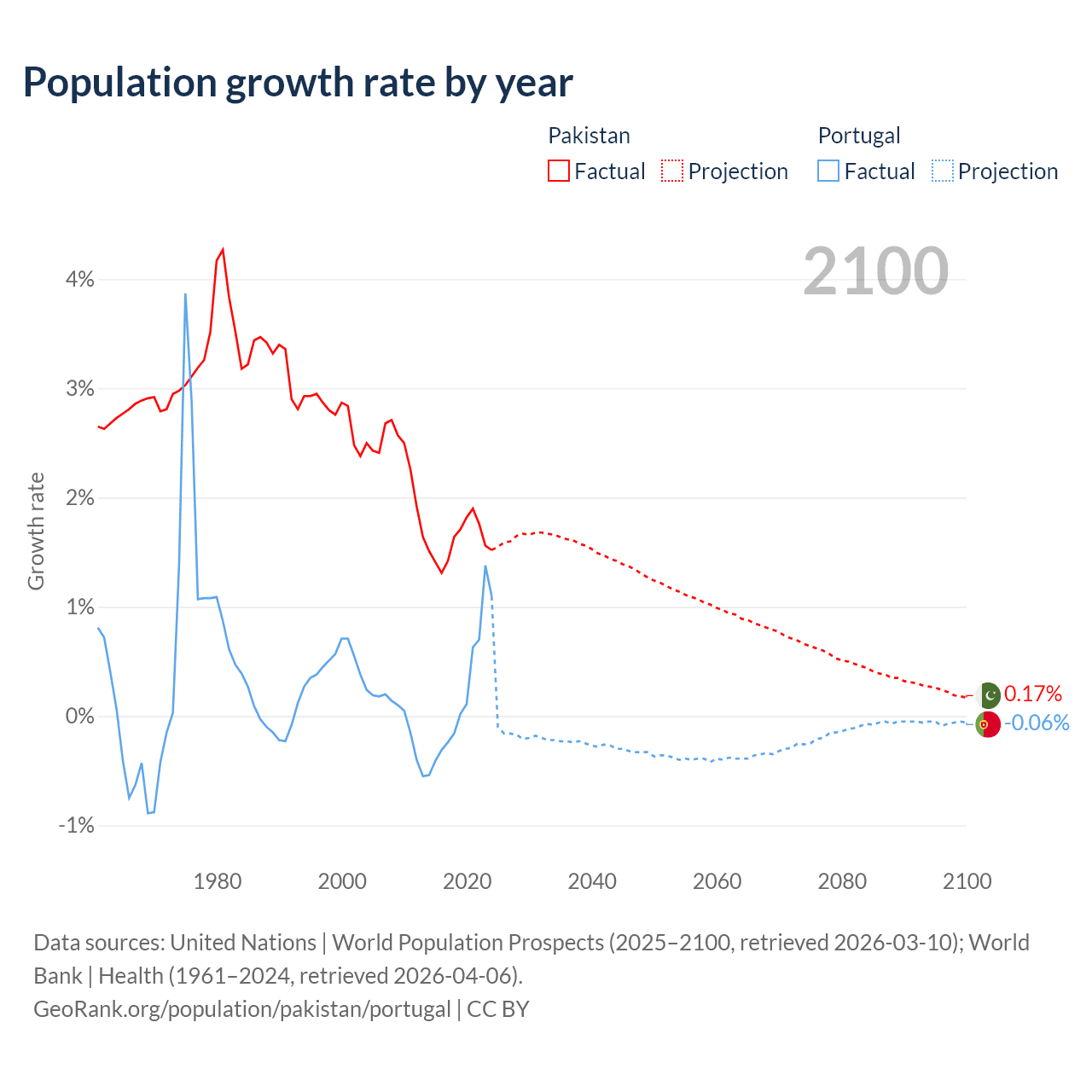 - For the last 10 years, Pakistan has had an average growth rate of +1.6% per year vs +0.21% in Portugal.