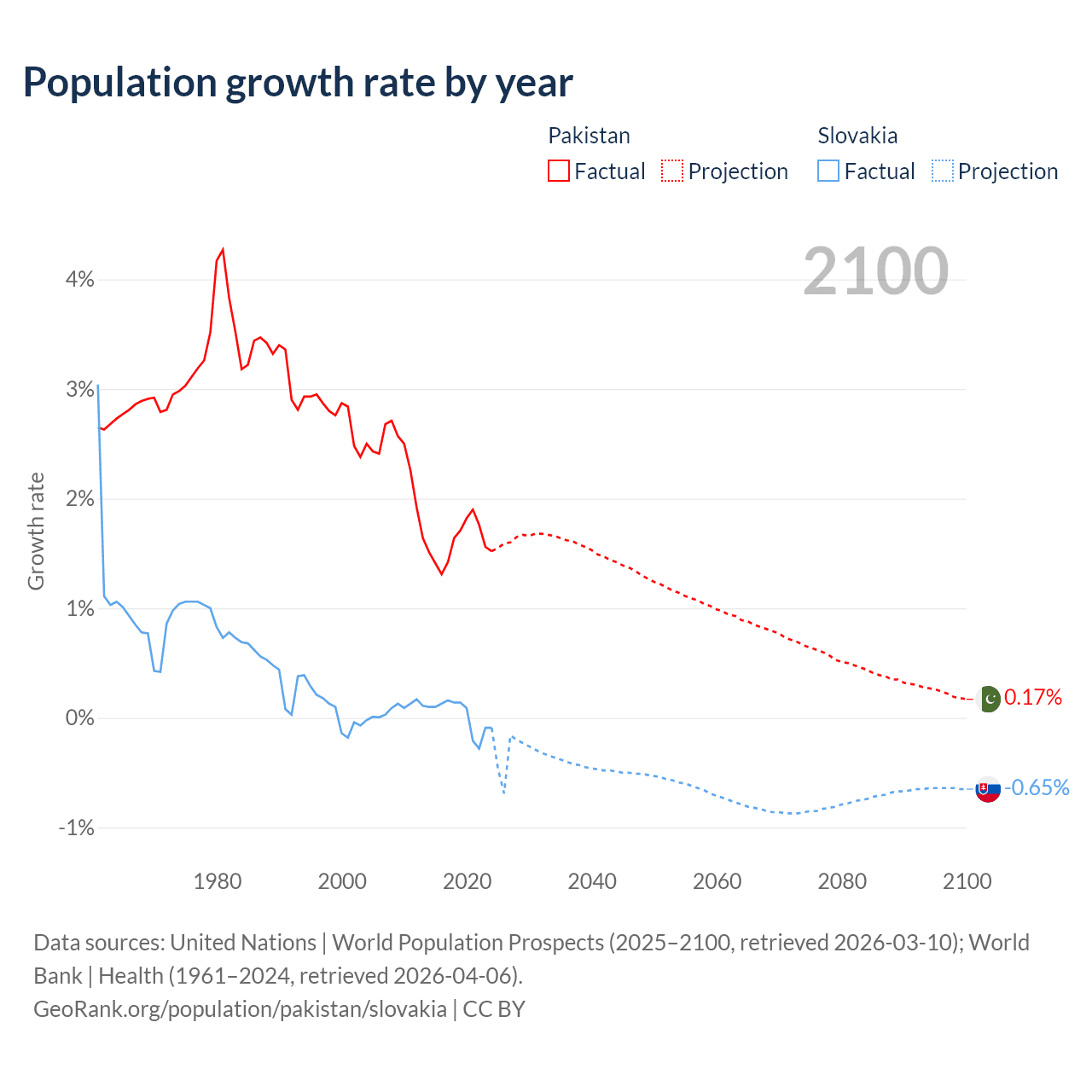 - For the last 10 years, Pakistan has had an average growth rate of +1.6% per year vs +0.01% in Slovakia.