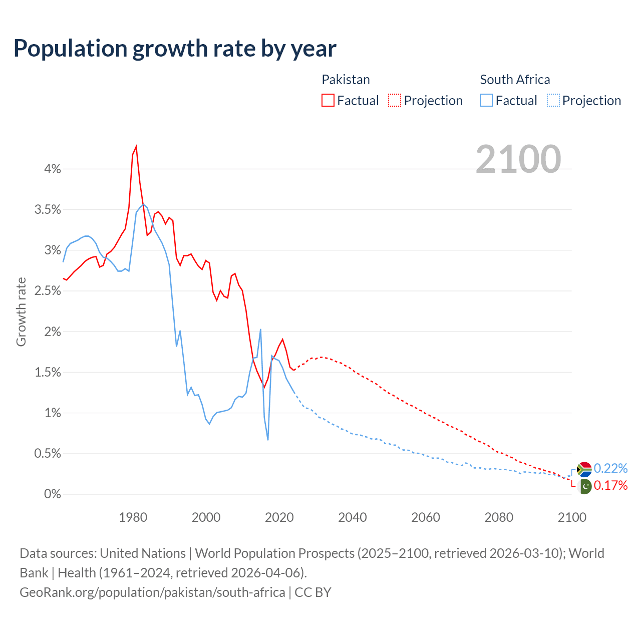 Data sources: World Bank | Health (1960–2024, retrieved 2026-04-06); United Nations | World Population Prospects (1960–2026, retrieved 2026-03-10); U.S. Census Bureau (1960–2025, retrieved 2026-02-08); Central Intelligence Agency (CIA) (2000–2019, retrieved 2026-02-20).