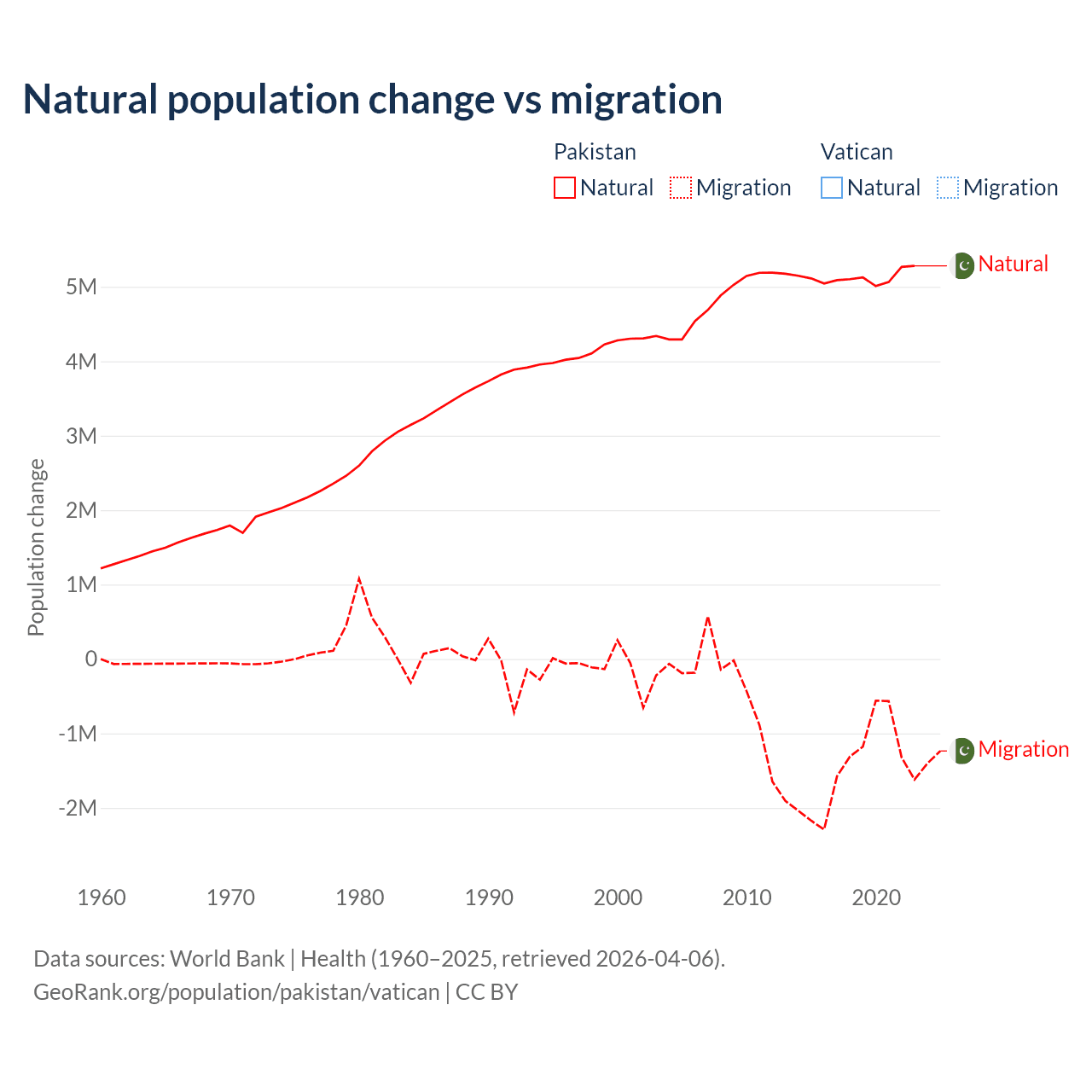 - For the last 10 years, Pakistan has had an average growth rate of +1.6% per year vs +1.9% in the Vatican.