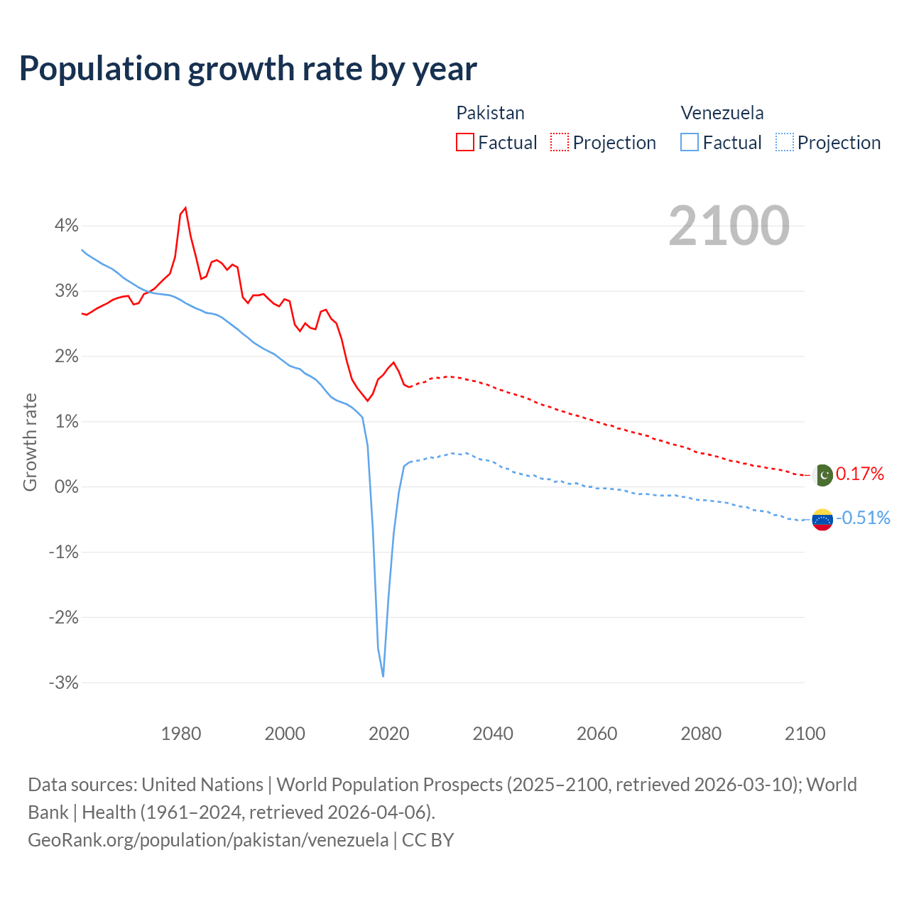 Data sources: World Bank | Health (1960–2024, retrieved 2026-04-06); United Nations | World Population Prospects (1960–2026, retrieved 2026-03-10); U.S. Census Bureau (1960–2025, retrieved 2026-02-08); Central Intelligence Agency (CIA) (2000–2019, retrieved 2026-02-20).