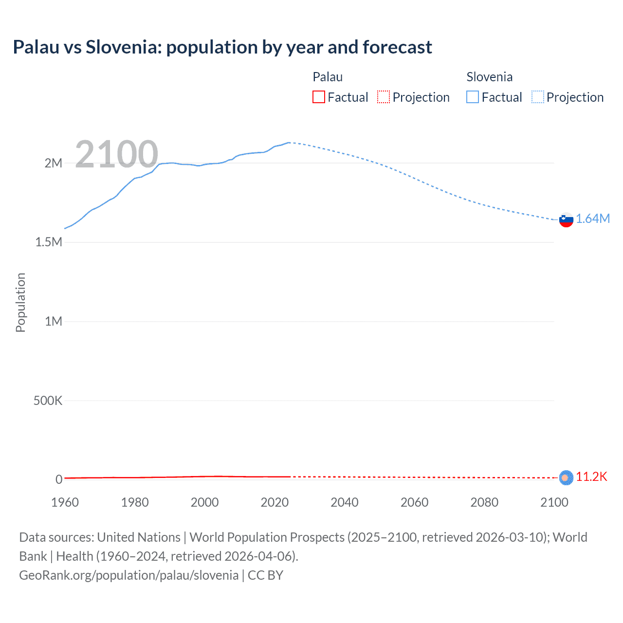 Palau vs Slovenia: population by year and forecast
