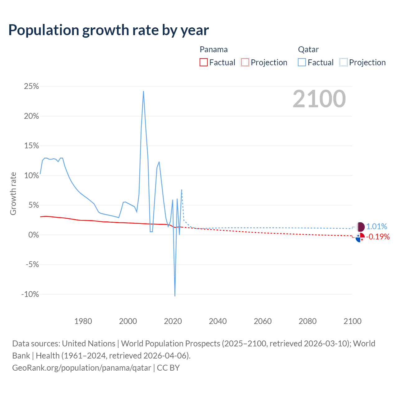 - For the last 10 years, Panama has had an average growth rate of +1.52% per year vs +3.86% in Qatar.