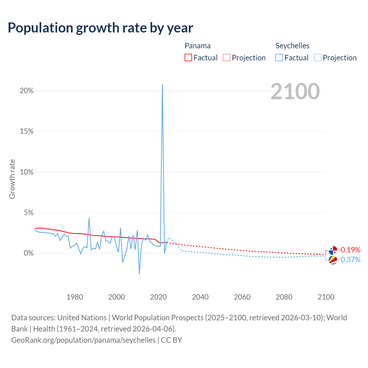 Panama vs Seychelles: population by year and forecast