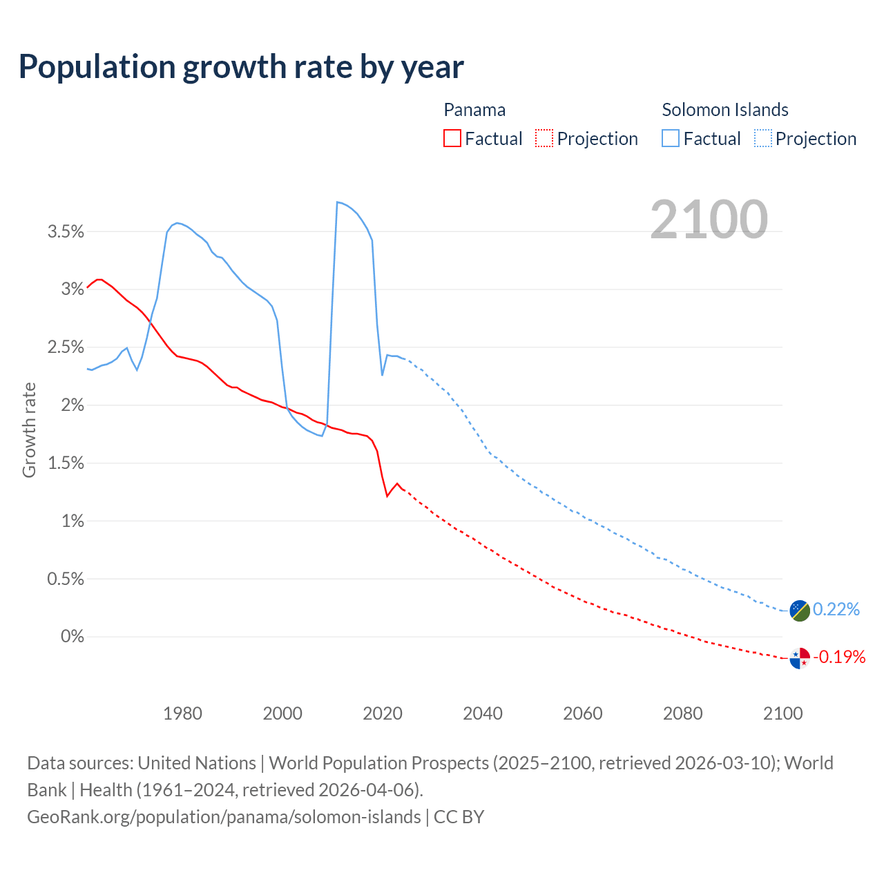 Panama vs Solomon Islands: population by year and forecast
