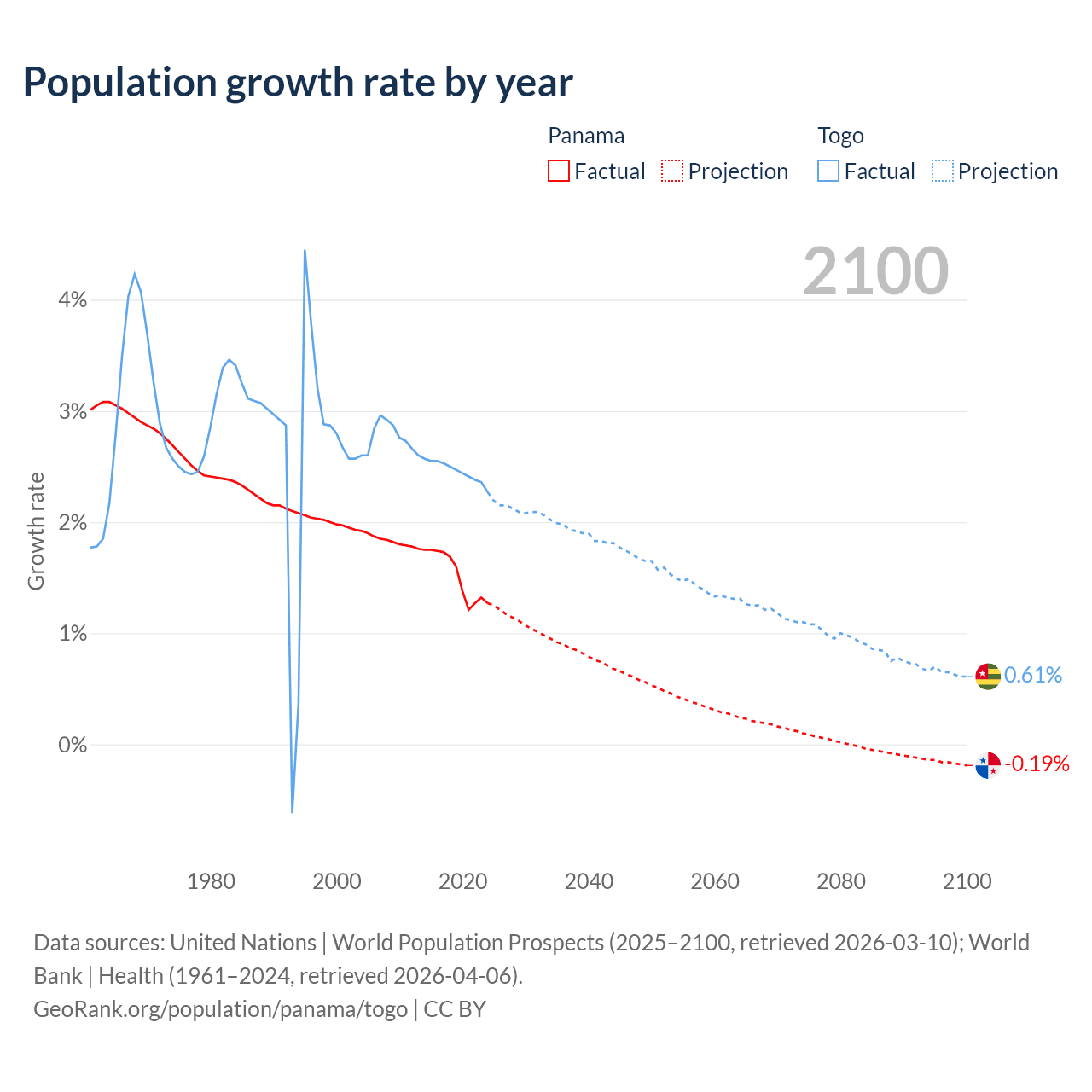 - For the last 10 years, Panama has had an average growth rate of +1.52% per year vs +2.46% in Togo.