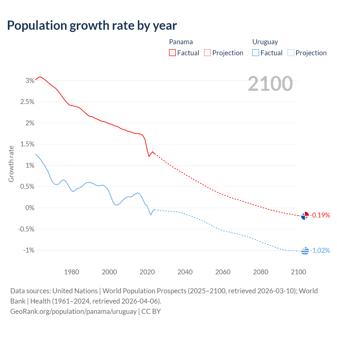 Panama vs Uruguay: population by year and forecast