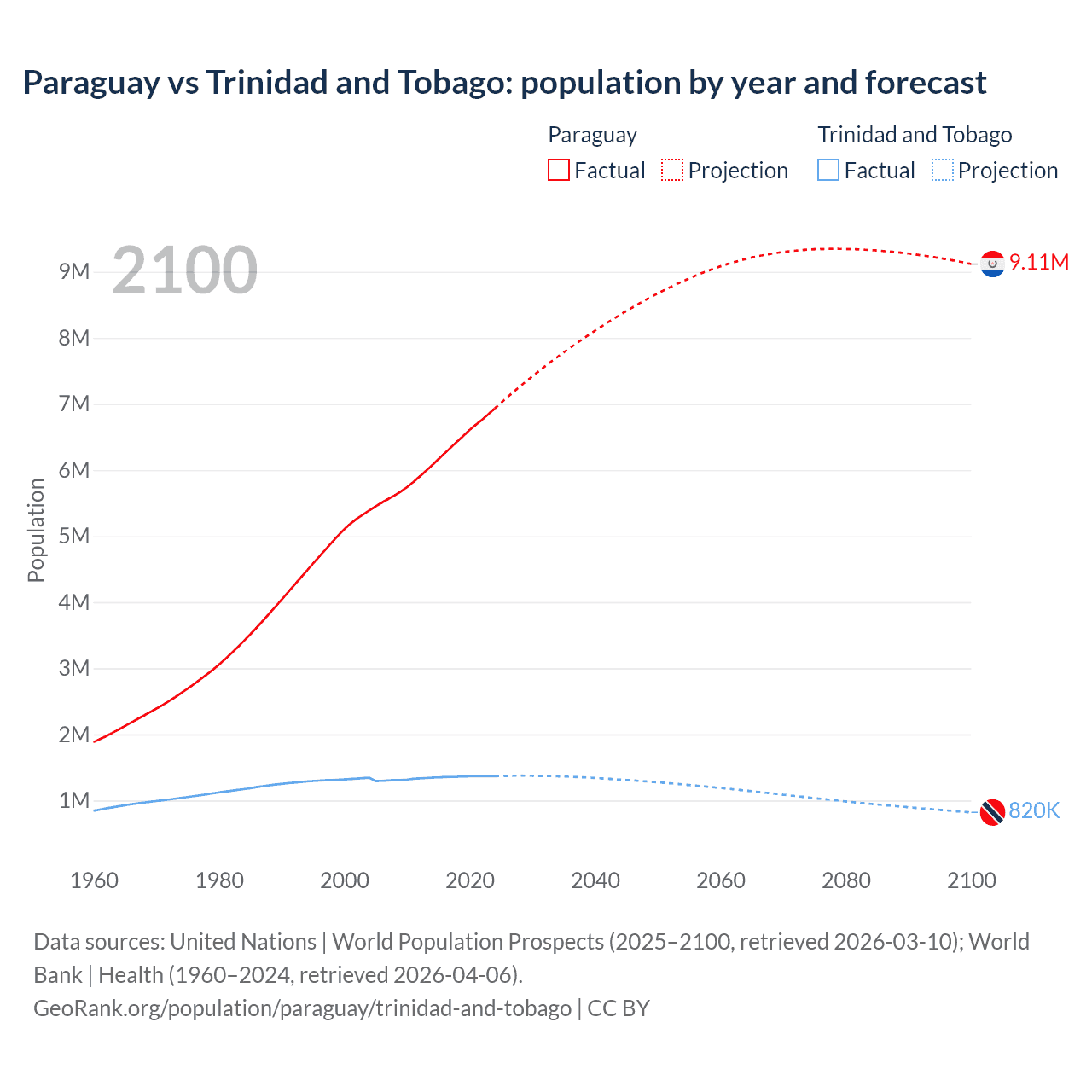 Paraguay vs Trinidad and Tobago: population by year and forecast