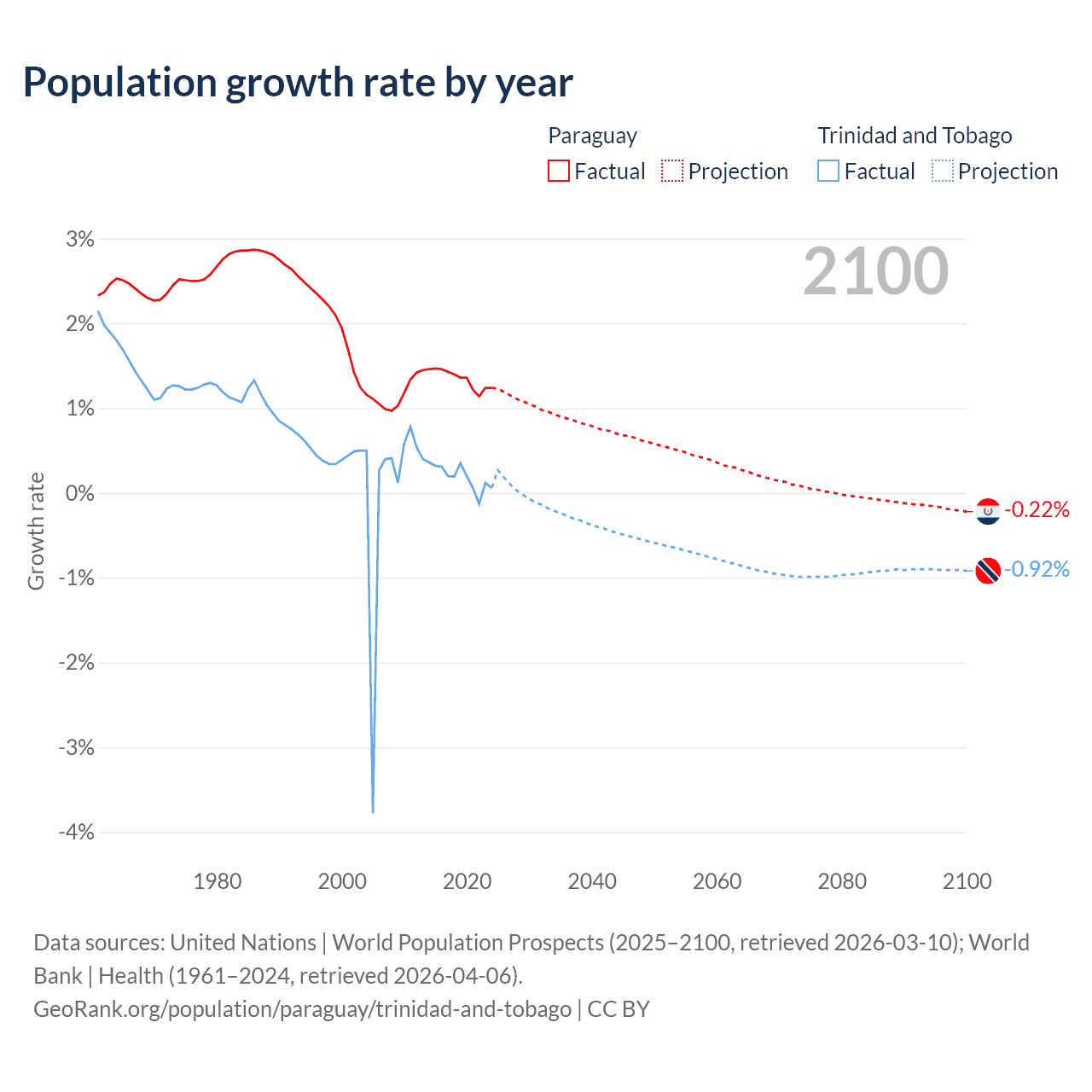 - For the last 10 years, Paraguay has had an average growth rate of +1.34% per year vs +0.19% in Trinidad and Tobago.
