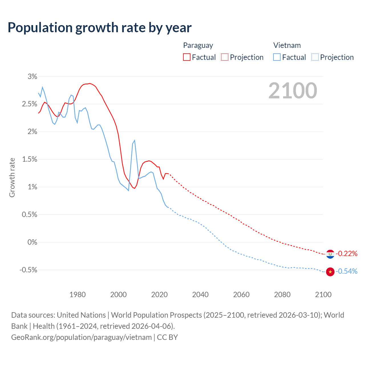 - For the last 10 years, Paraguay has had an average growth rate of +1.34% per year vs +0.99% in Vietnam.