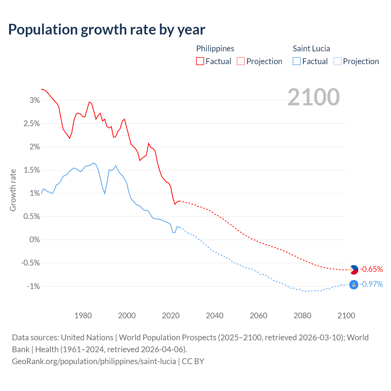 Population differences between the Philippines and Saint Lucia
