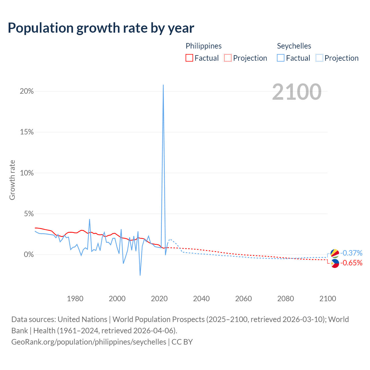Philippines vs Seychelles: population by year and forecast