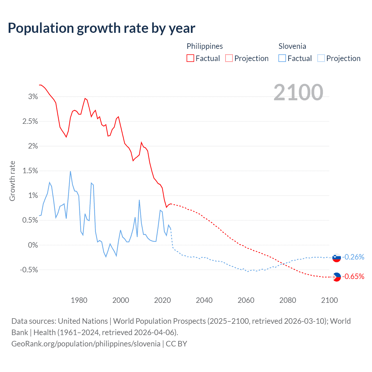 - For the last 10 years, the Philippines has had an average growth rate of +1.16% per year vs +0.29% in Slovenia.