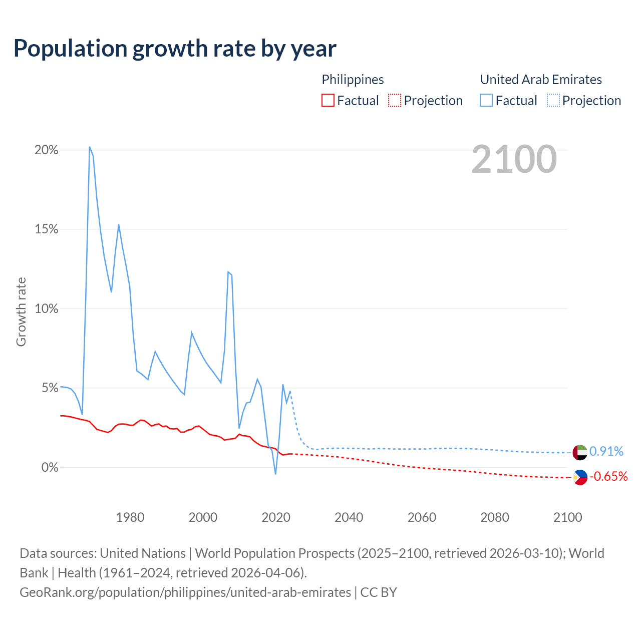 - For the last 10 years, the Philippines has had an average growth rate of +1.16% per year vs +3.31% in the United Arab Emirates.