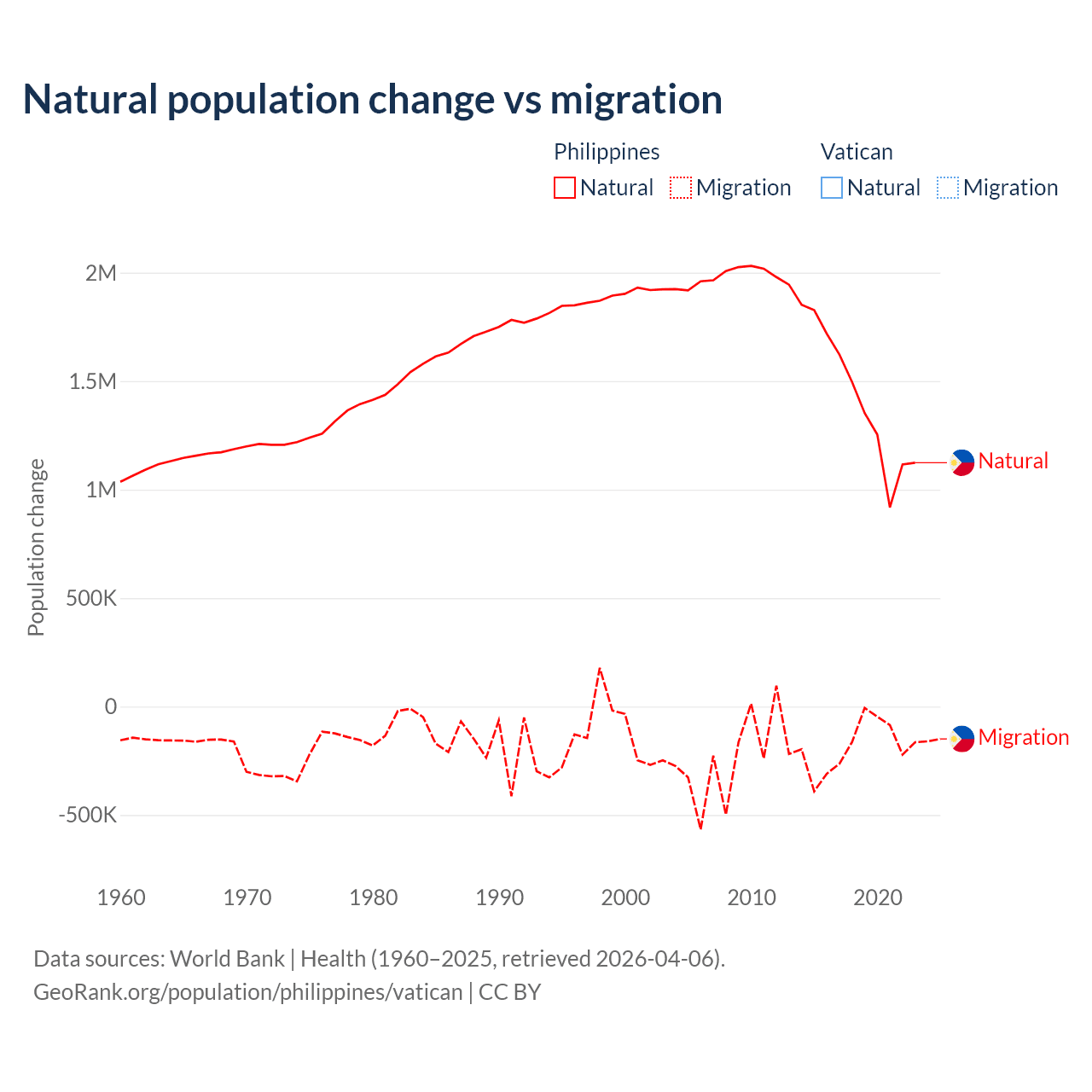 - For the last 10 years, the Philippines has had an average growth rate of +1.16% per year vs +1.9% in the Vatican.
