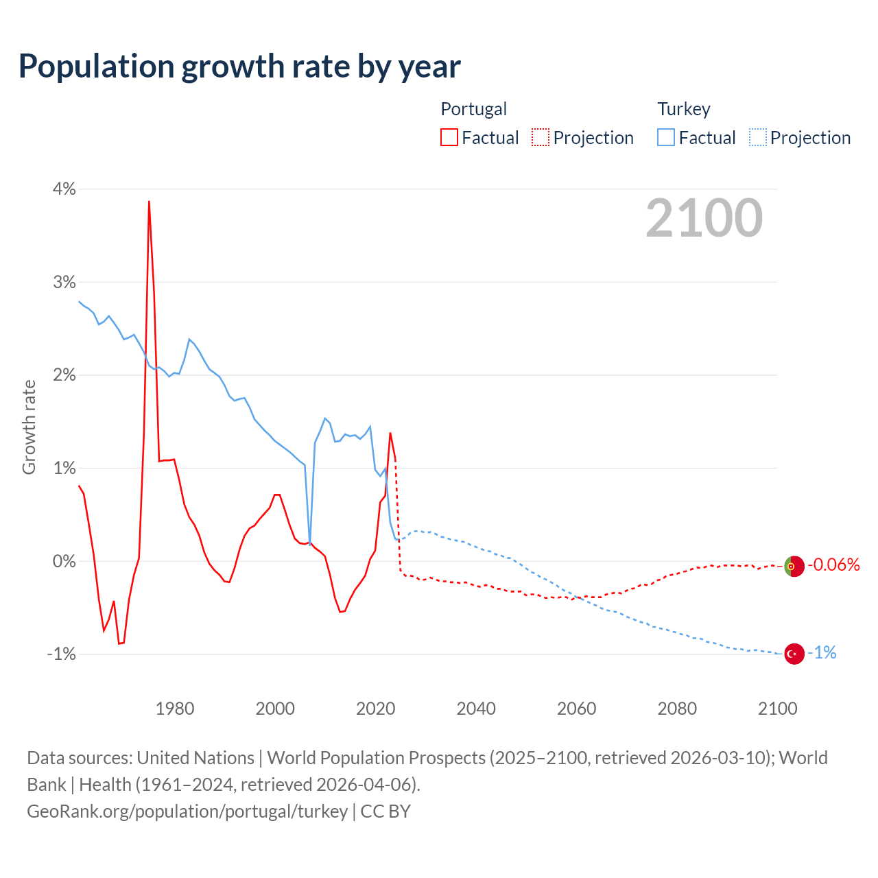 Data sources: World Bank | Health (1960–2024, retrieved 2026-04-06); United Nations | World Population Prospects (1960–2026, retrieved 2026-03-10); U.S. Census Bureau (1960–2025, retrieved 2026-02-08); Central Intelligence Agency (CIA) (2000–2019, retrieved 2026-02-20).