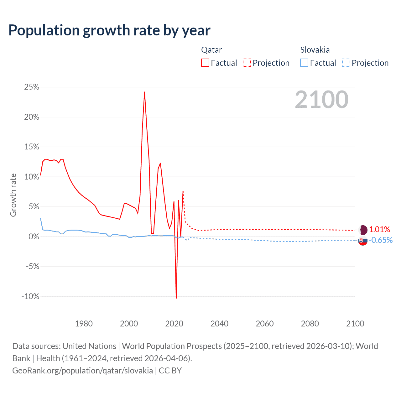 - For the last 10 years, Qatar has had an average growth rate of +3.86% per year vs +0.01% in Slovakia.
