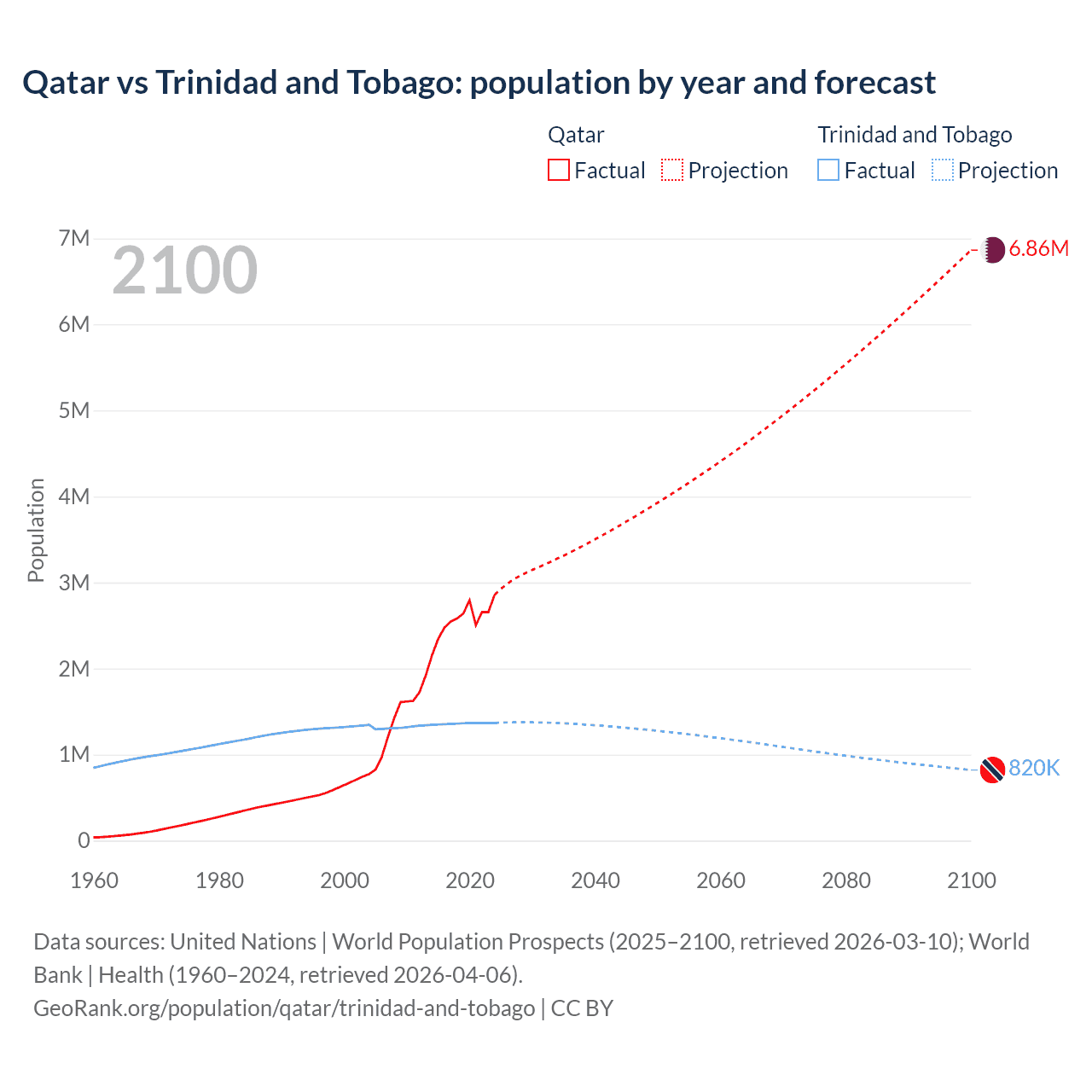 Qatar vs Trinidad and Tobago: population by year and forecast