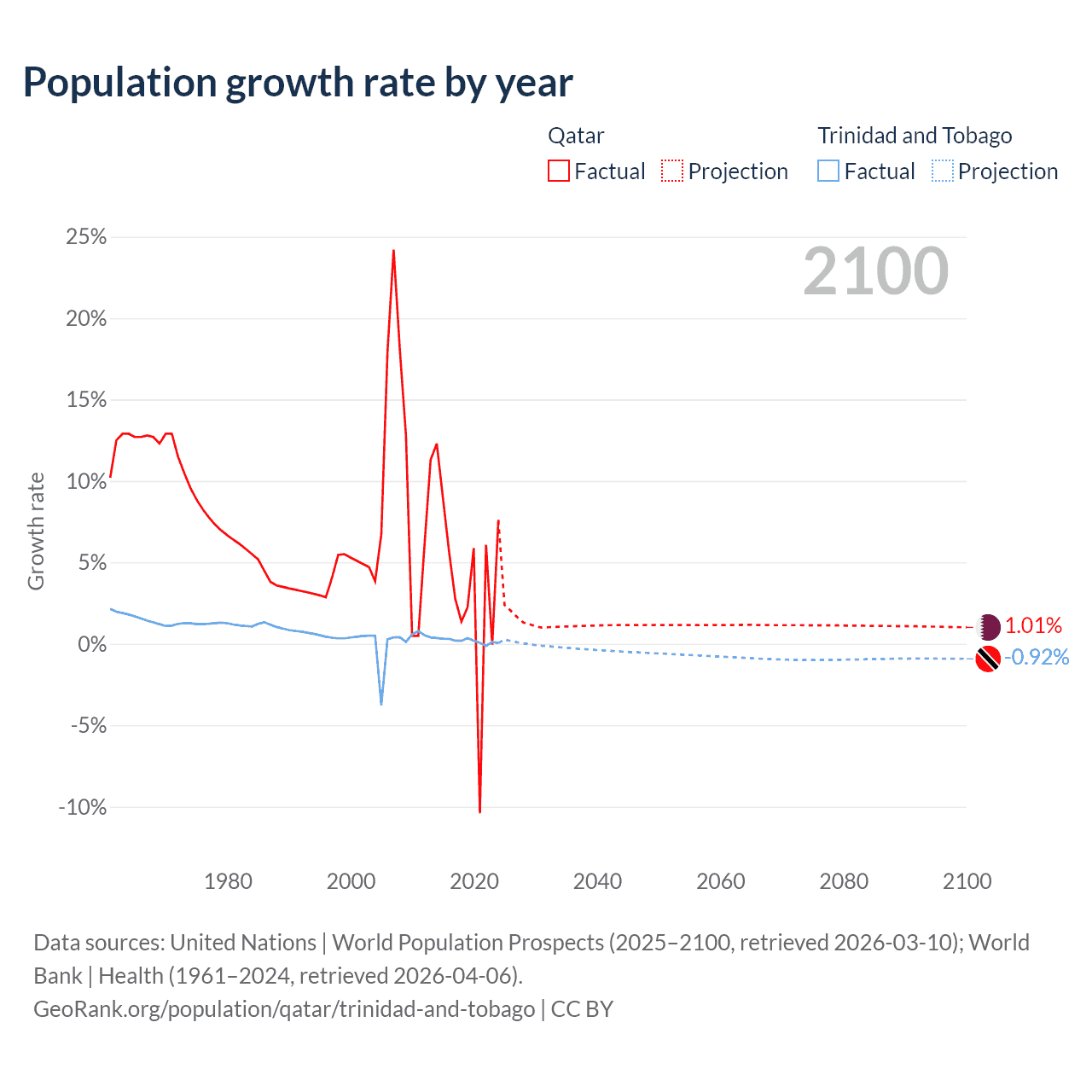 - For the last 10 years, Qatar has had an average growth rate of +3.86% per year vs +0.19% in Trinidad and Tobago.