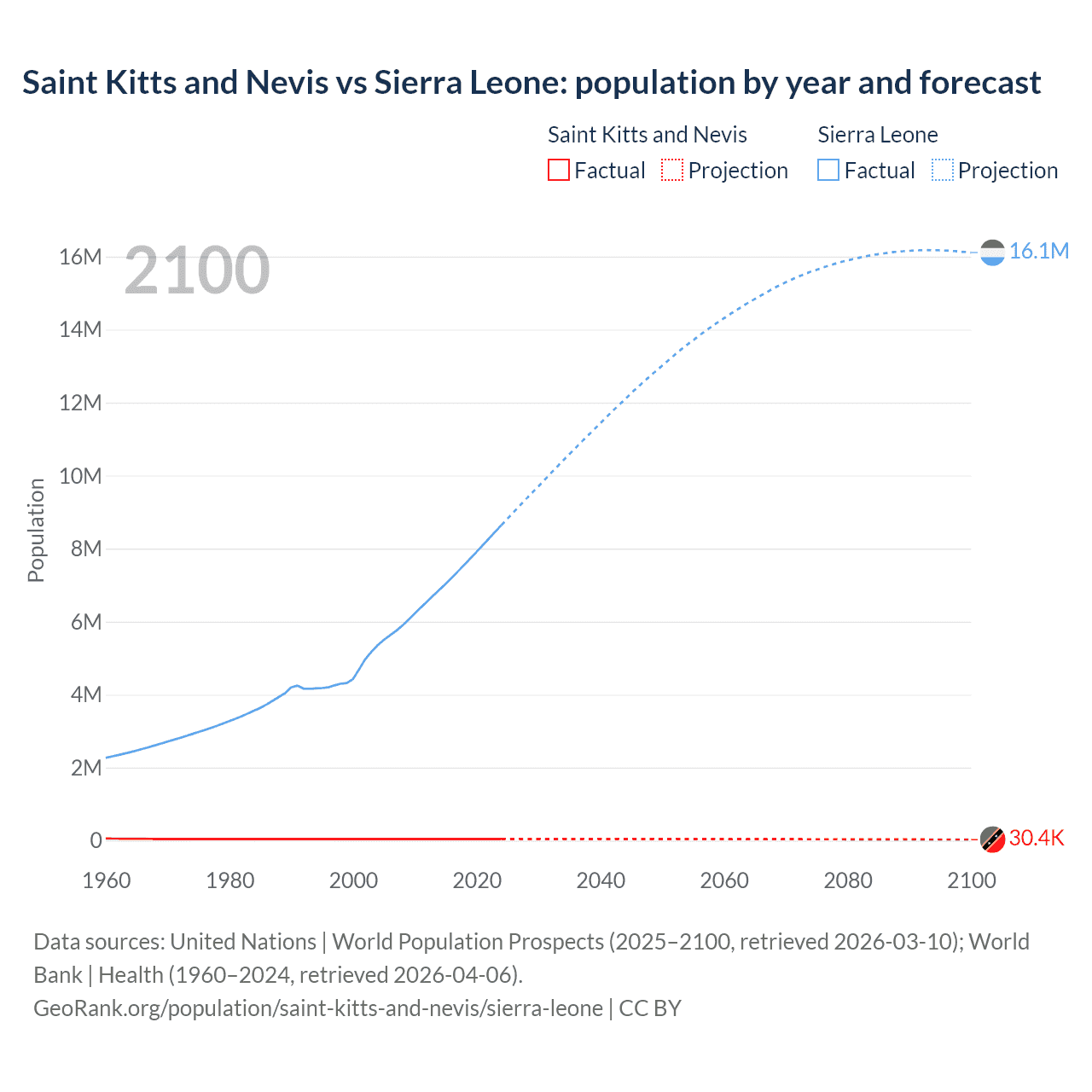 Saint Kitts and Nevis vs Sierra Leone: population by year and forecast