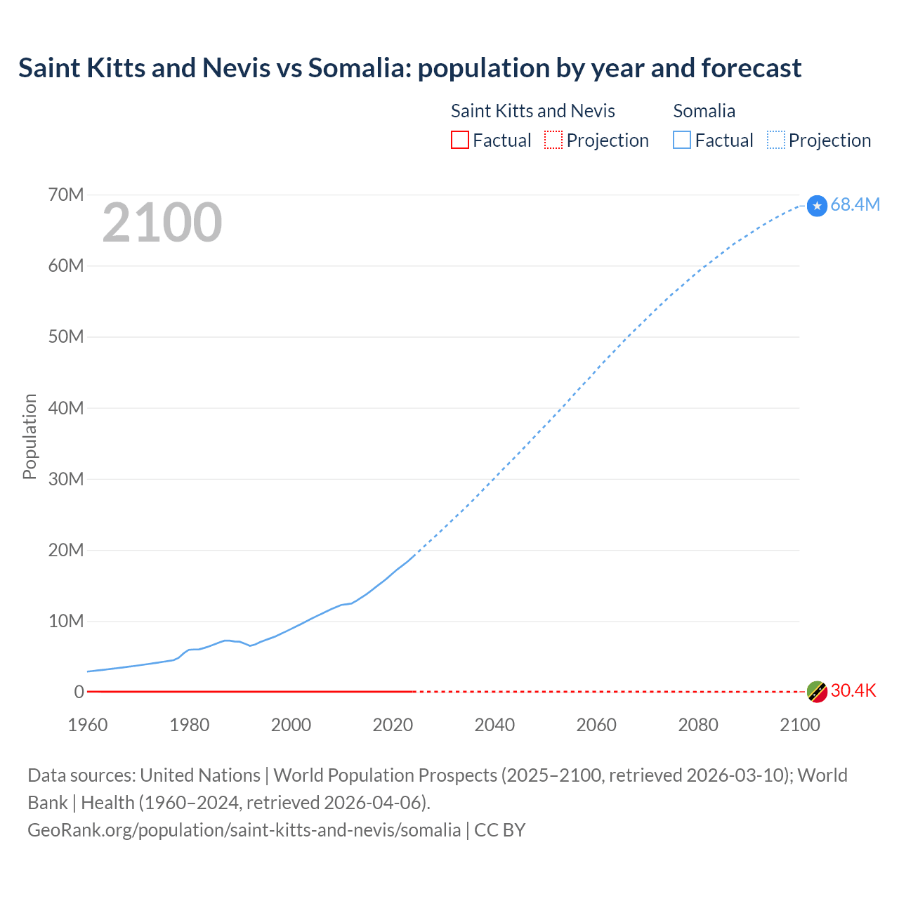 Saint Kitts and Nevis vs Somalia: population by year and forecast