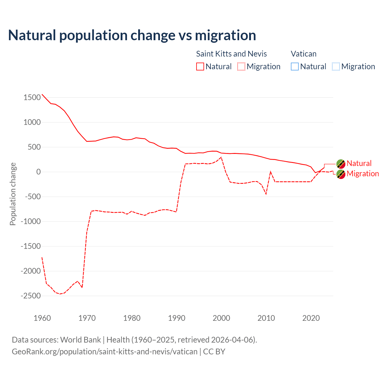 Saint Kitts and Nevis vs Vatican: population by year and forecast
