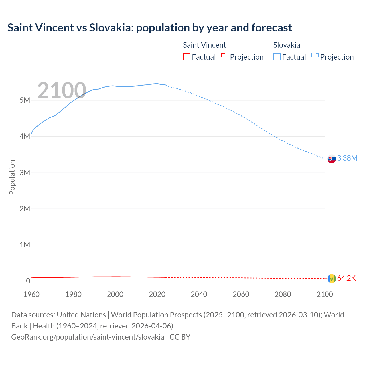Saint Vincent vs Slovakia: population by year and forecast