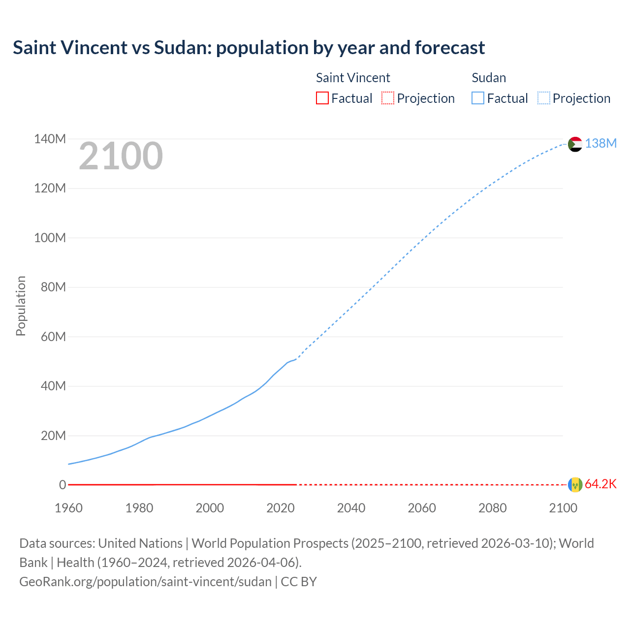 Saint Vincent vs Sudan: population by year and forecast