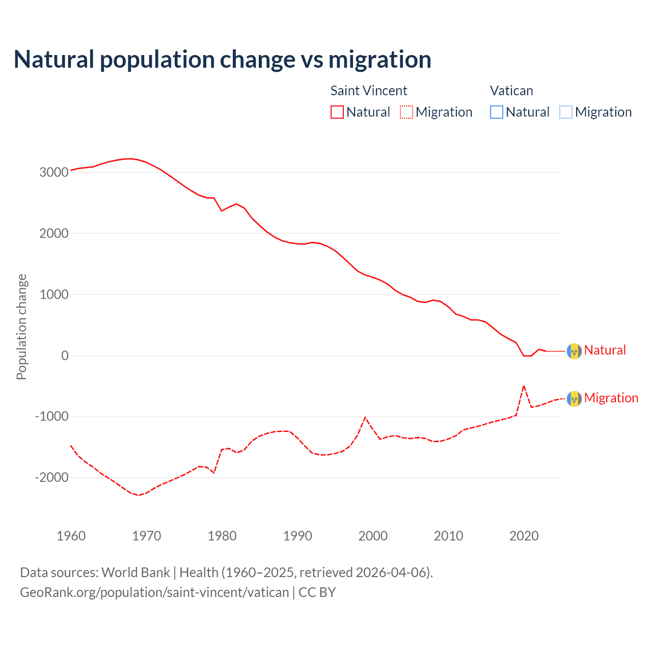 Saint Vincent vs Vatican: population by year and forecast