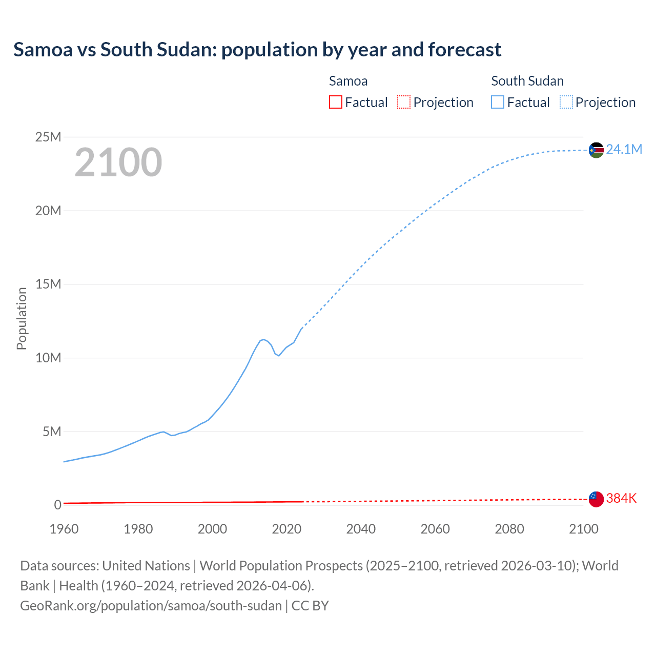 Population differences between Samoa and South Sudan