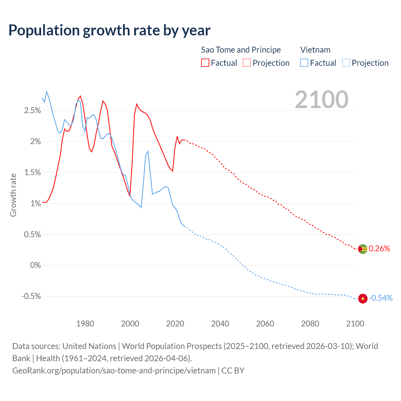 Sao Tome and Principe vs Vietnam: population by year and forecast